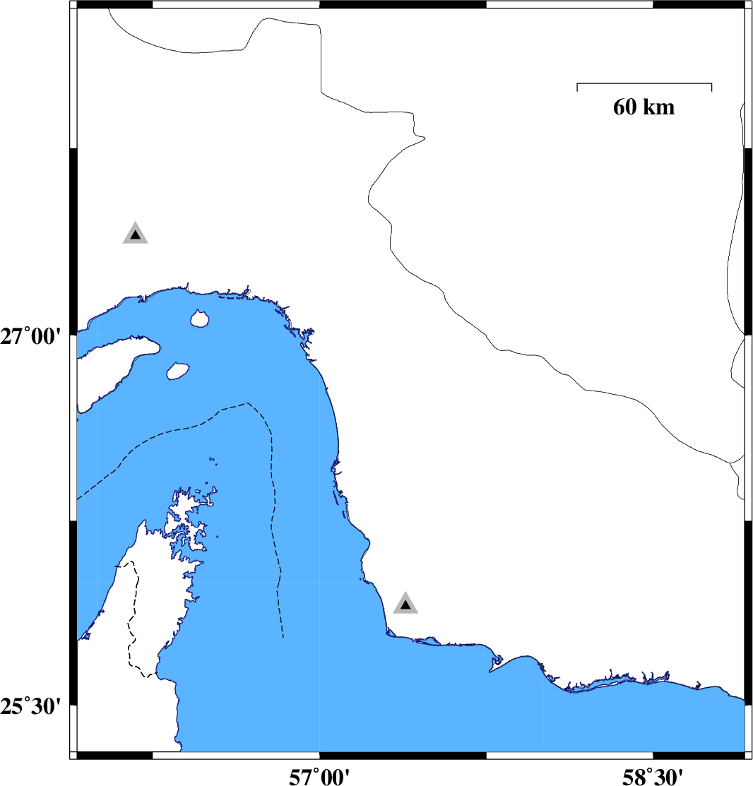 2013/06/12 | 06:35:05.7 | 11:05:05.7 | 26.29 | 57.1 | 15 | ML:3.2 | Oman Sea, 96 km South of Minab | ||
