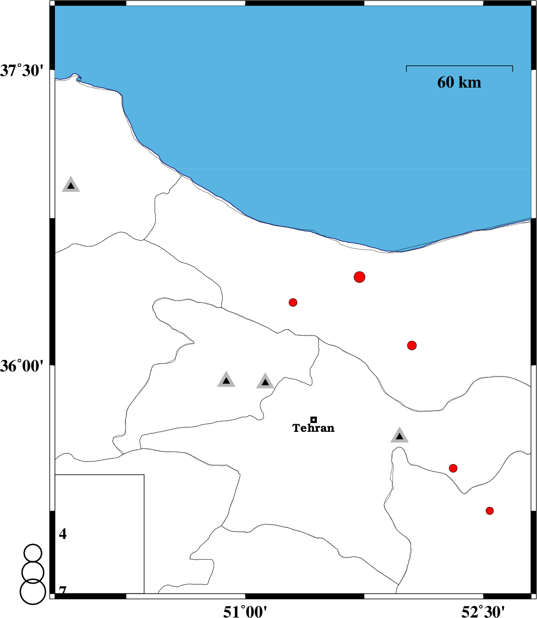 2013/06/10 | 20:09:47.7 | 00:39:47.7 | 35.47 | 52.31 | 28 | ML:2.3 | Tehran Province, 28 km North of Garmsar | ||