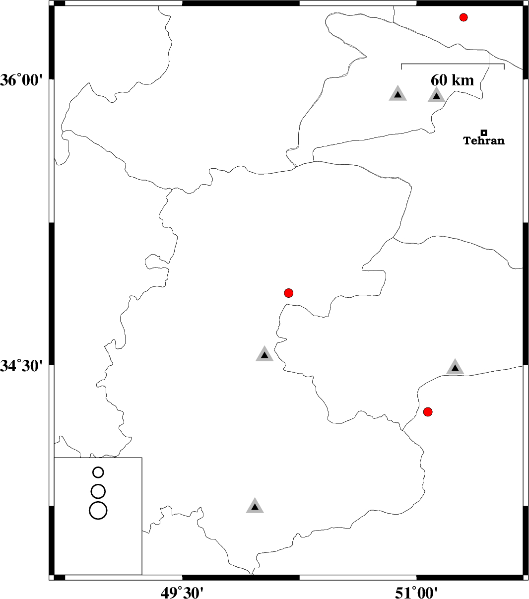 2013/06/13 | 09:17:09.7 | 13:47:09.7 | 36.32 | 51.3 | 14 | ML:2.3 | Mazandaran Province, 39 km South-West of Chalus |