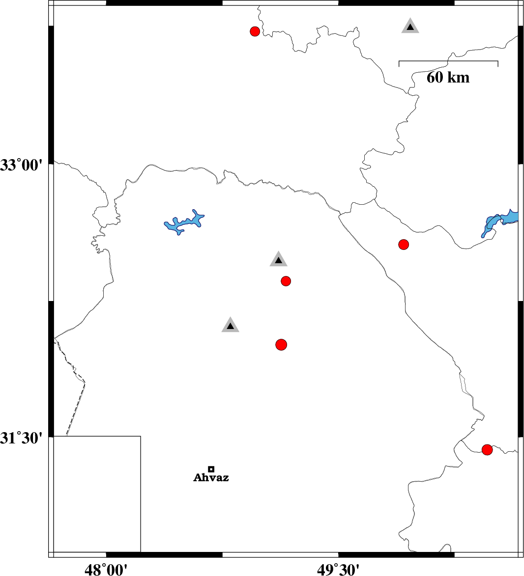 2013/06/17 | 02:36:16.0 | 07:06:16.0 | 33.72 | 48.96 | 11 | ML:2.8 | Lorestan Province, 28 km North-West of Dorud |