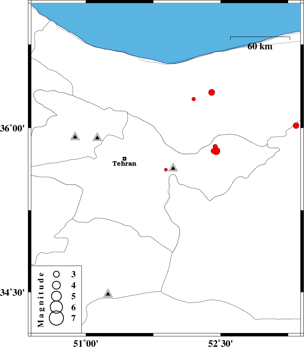 | 2013/06/21 | 22:04:59.7 | 02:34:59.7 | 35.83 | 52.44 | 13 | ML:2.3 | Tehran Province, 31 km West of Firuzkuh | ||