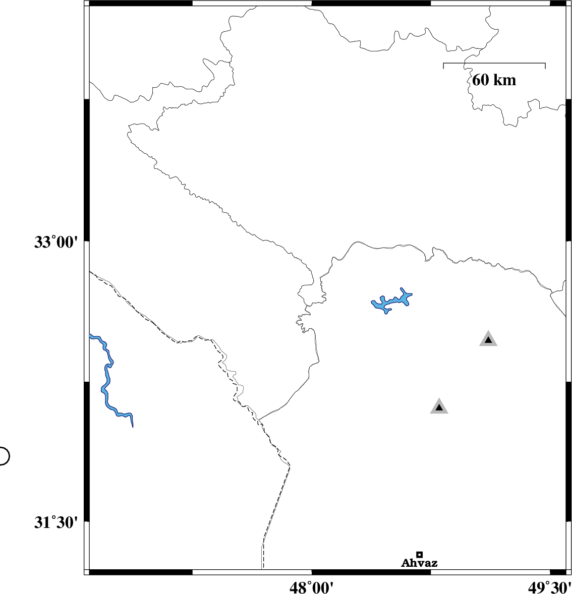 2013/05/28 | 15:39:00.3 | 20:09:00.3 | 32 | 48.84 | 15 | ML:2.6 | Khoozestan Province, 5 km Shushtar | ||