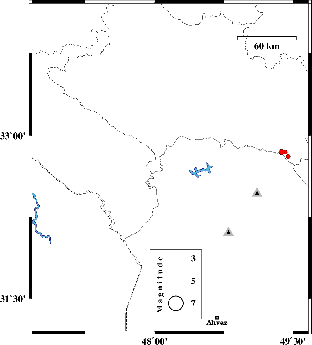 2013/06/24 | 00:57:58.4 | 05:27:58.4 | 32.74 | 48.1 | 14 | ML:2.7 | Khoozestan Province, 39 km North-West of Andimeshk | ||