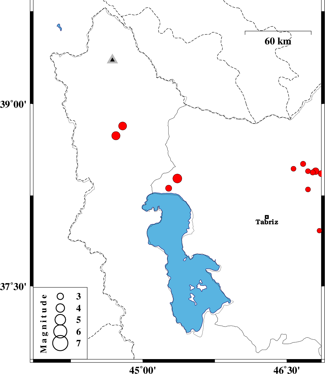 2013/06/08 | 09:38:03.3 | 14:08:03.3 | 38.31 | 45.27 | 46 | ML:3 | Azarbaijan Sharghi Province, 39 km North-West of Shabestar | ||