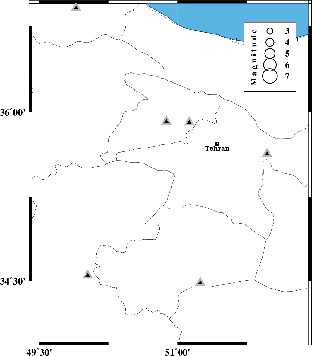 2013/06/04 | 22:24:09.8 | 02:54:09.8 | 35.8 | 51.8 | 14 | ML:1.8 | Tehran Province, 26 km West of Damavand | ||