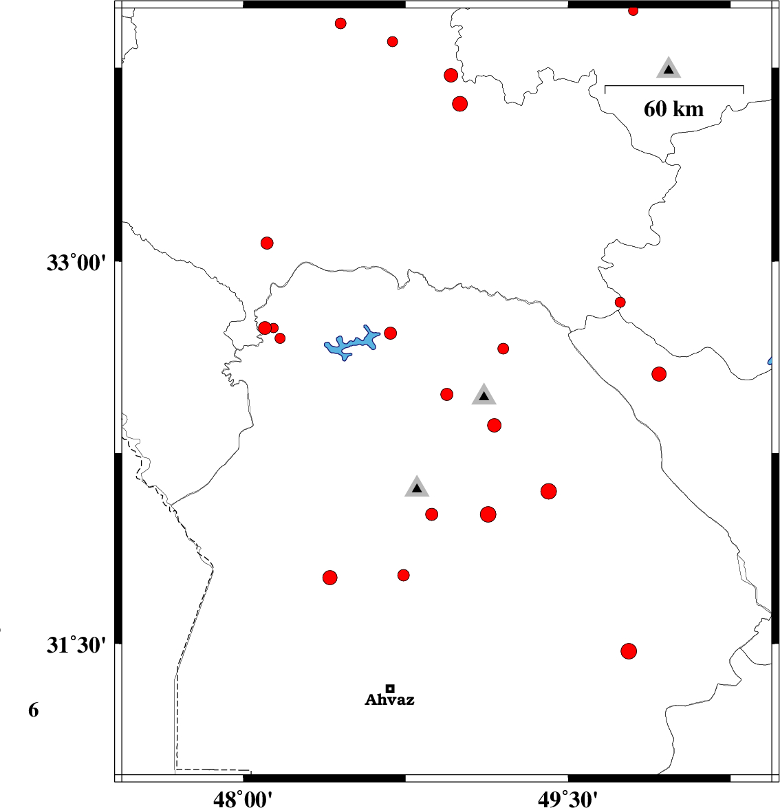 2013/06/12 | 19:26:48.0 | 23:56:48.0 | 31.47 | 49.78 | 14 | ML:3.3 | Khoozestan Province, 12 km West of Bagh Malek | ||