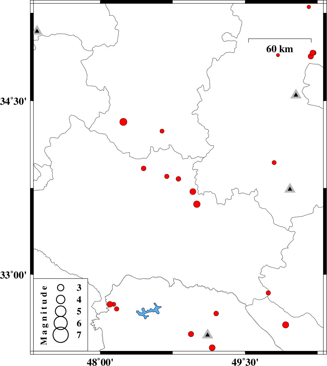 2013/06/23 | 09:30:14.1 | 14:00:14.1 | 33.97 | 49.8 | 24 | ML:2 | Markazi Province, 17 km South-East of Arak | ||