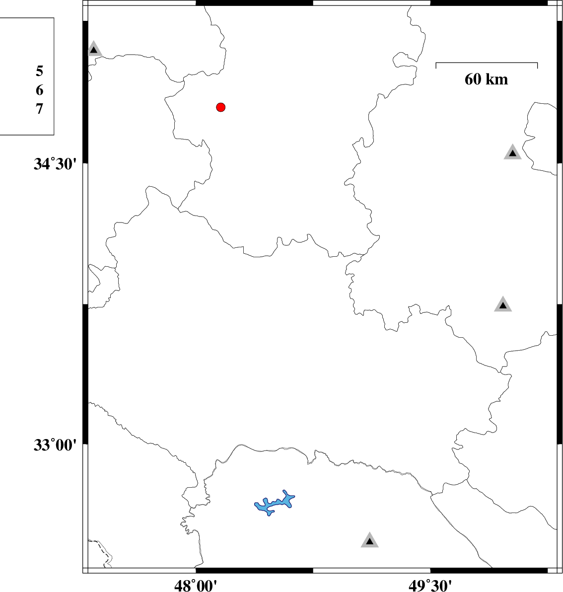 2013/07/05 | 07:57:43.1 | 12:27:43.1 | 33.83 | 48.81 | 36 | ML:2.3 | Lorestan Province, 9 km Borujerd | ||