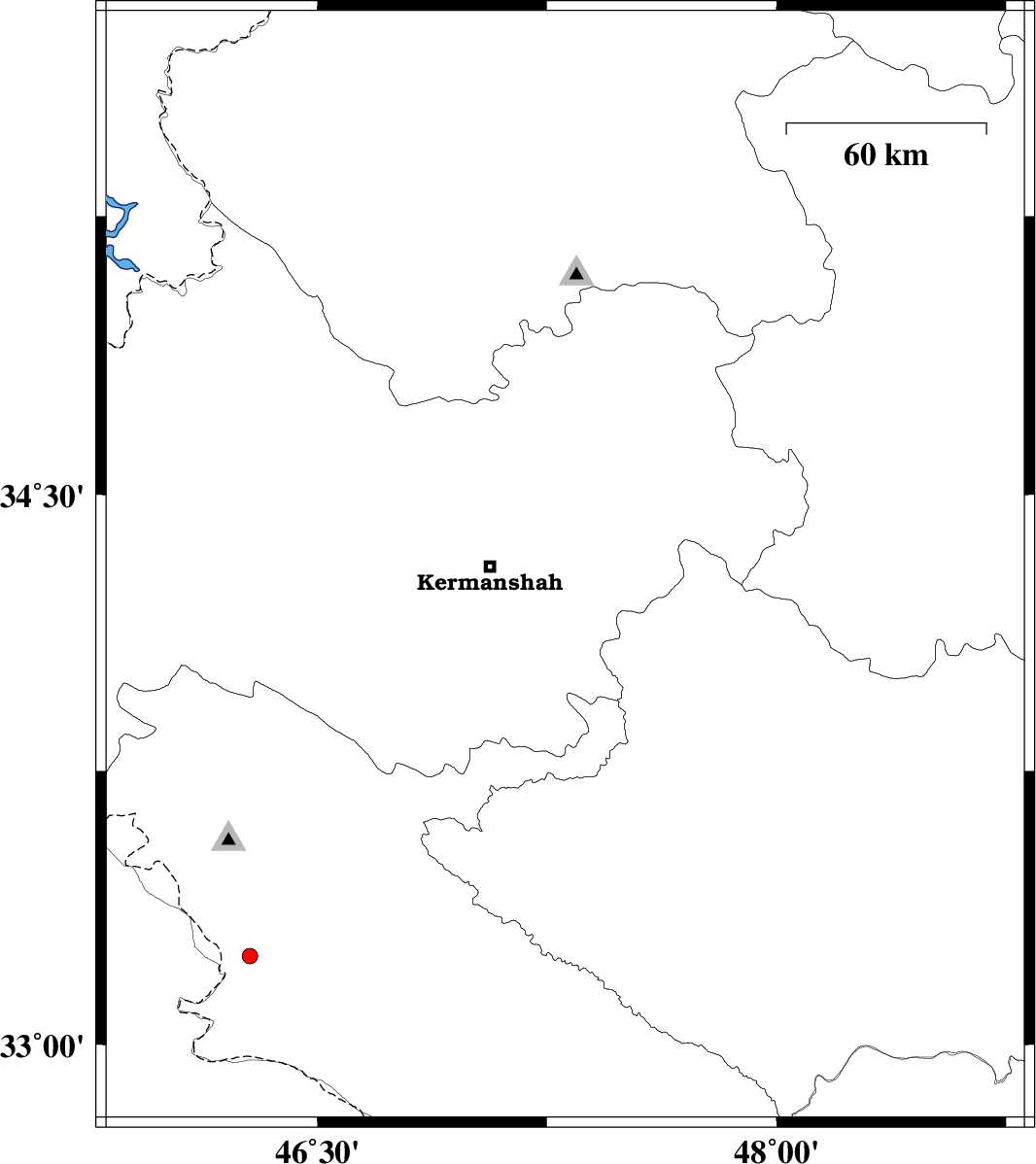2013/07/09 | 18:32:36.1 | 23:02:36.1 | 34.3 | 47.31 | 18 | ML:3.3 | Kermanshah Province, 22 km East of Kermanshah | ||