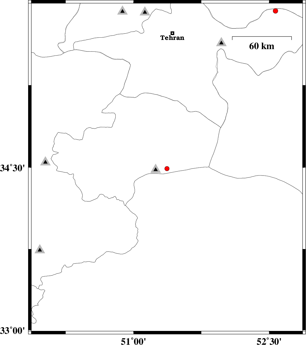 2013/07/04 | 16:31:25.8 | 21:01:25.8 | 35.92 | 52.57 | 14 | ML:2.4 | Tehran Province, 26 km North-West of Firuzkuh |