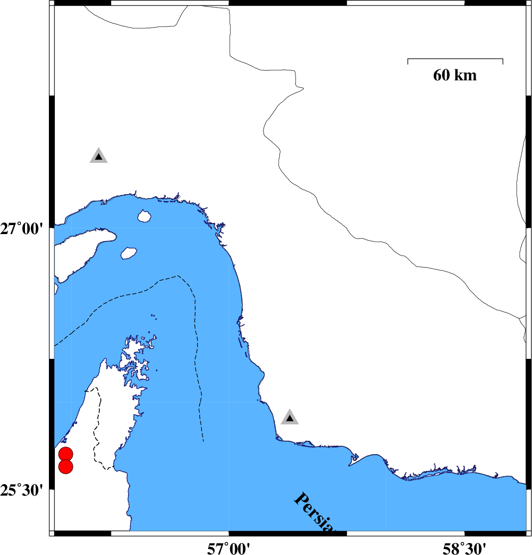 2013/06/24 | 03:48:45.5 | 08:18:45.5 | 26.62 | 57.77 | 18 | ML:3.4 | Hormozgan Province, 110 km North of Jask | ||