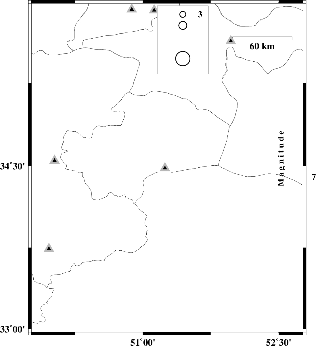 2013/07/16 | 22:34:18.0 | 03:04:18.0 | 34.47 | 51.27 | 6 | ML:2.2 | Qom Province, 42 km South-East of Qom | ||