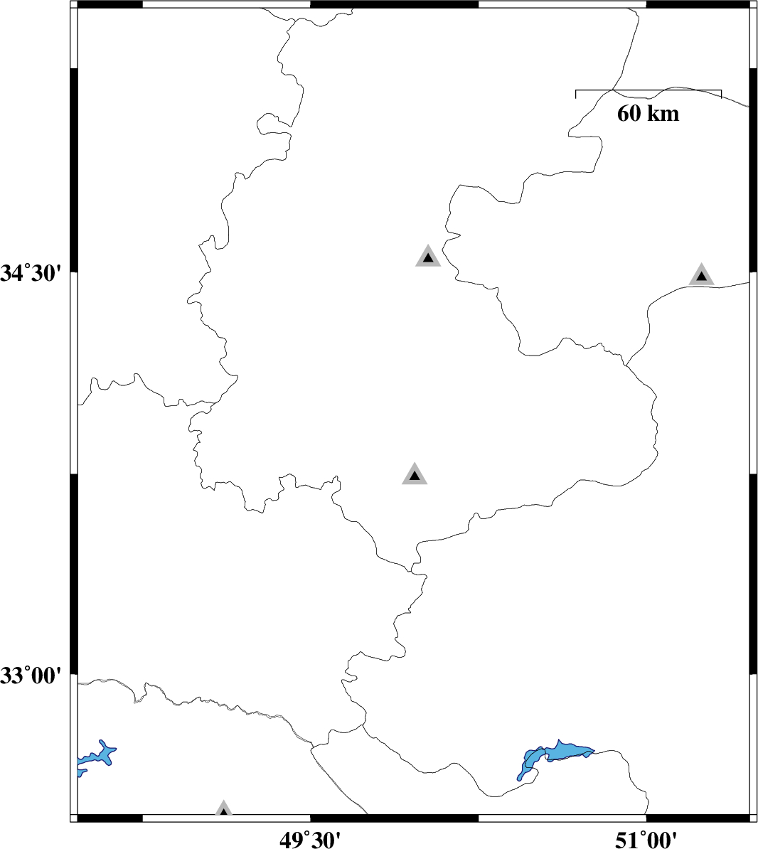 2013/07/18 | 09:40:16.2 | 14:10:16.2 | 33.97 | 49.96 | 9 | ML:1.8 | Markazi Province, 28 km South-East of Arak | ||