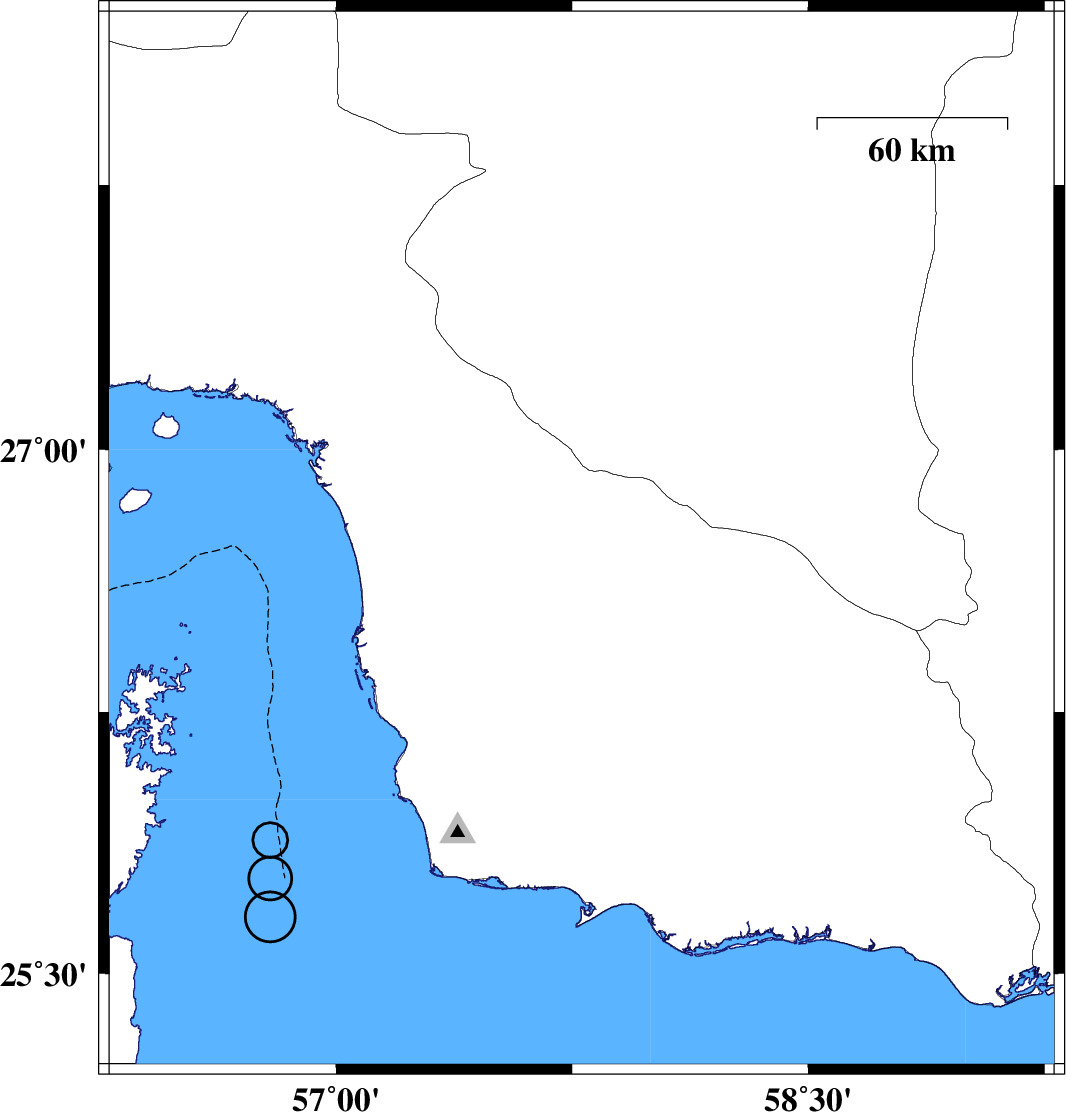 2013/07/19 | 21:05:47.5 | 01:35:47.5 | 26.74 | 57.78 | 18 | ML:3.4 | Hormozgan Province, 80 km South-East of Manujan | ||