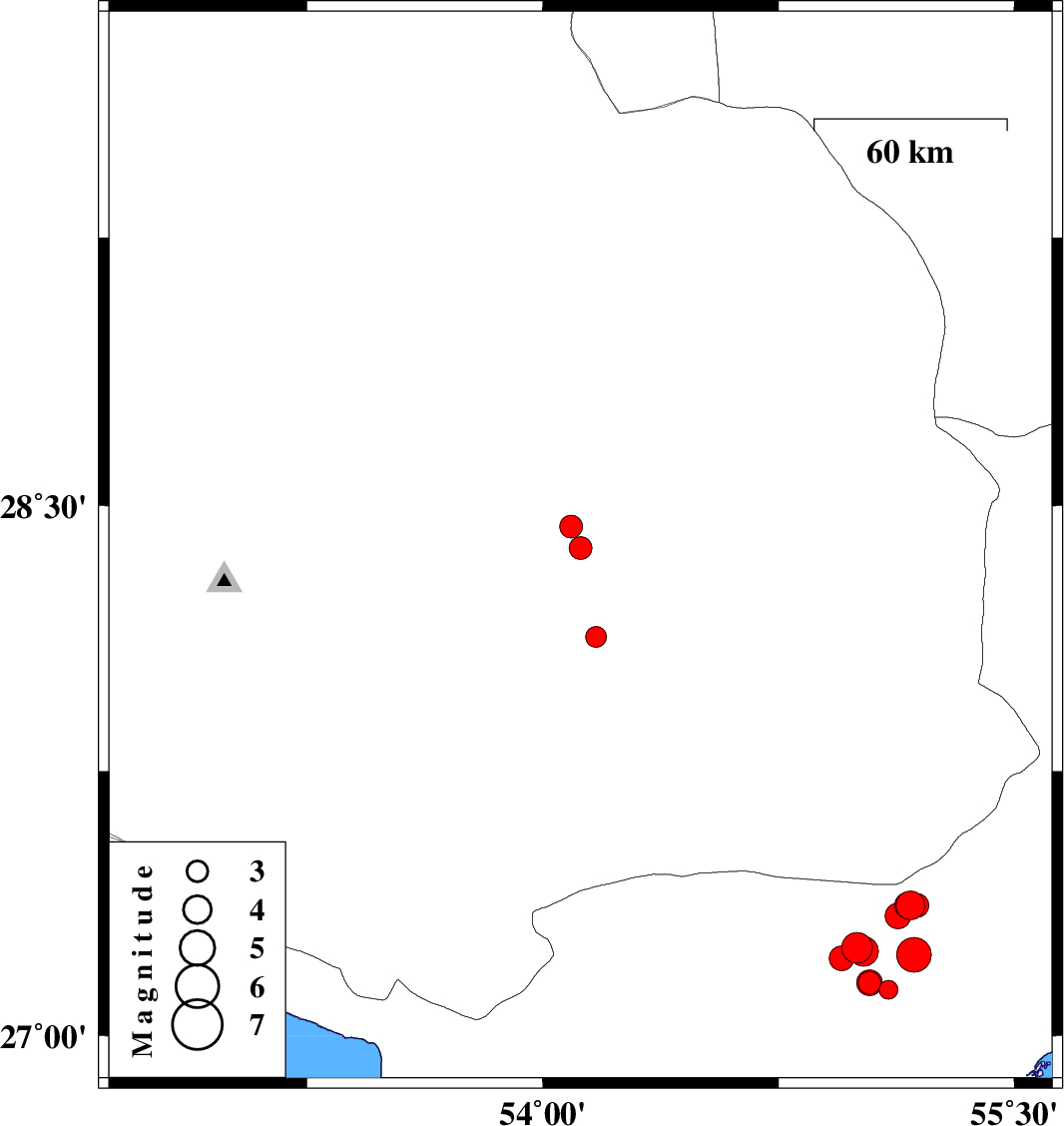 2013/07/07 09:15:37.3 13:45:37.3 27.1555.0429 ML:3.2 Hormozgan Province, 67 km East of Bastak