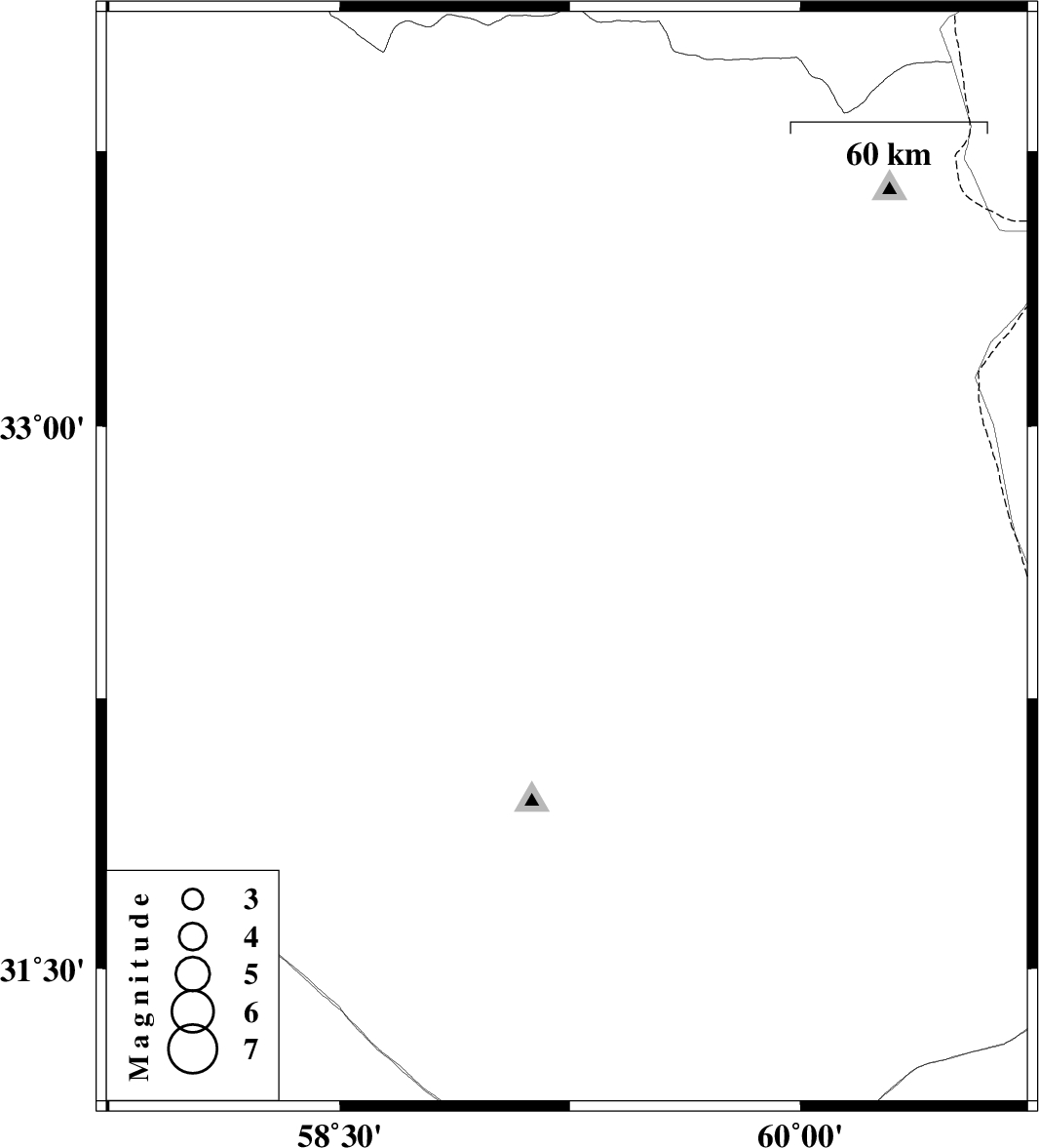 2013/07/26 | 12:00:47.4 | 16:30:47.4 | 32.63 | 59.24 | 34 | ML:2.2 | Khorasan(south) Province, 30 km South of Birjand |