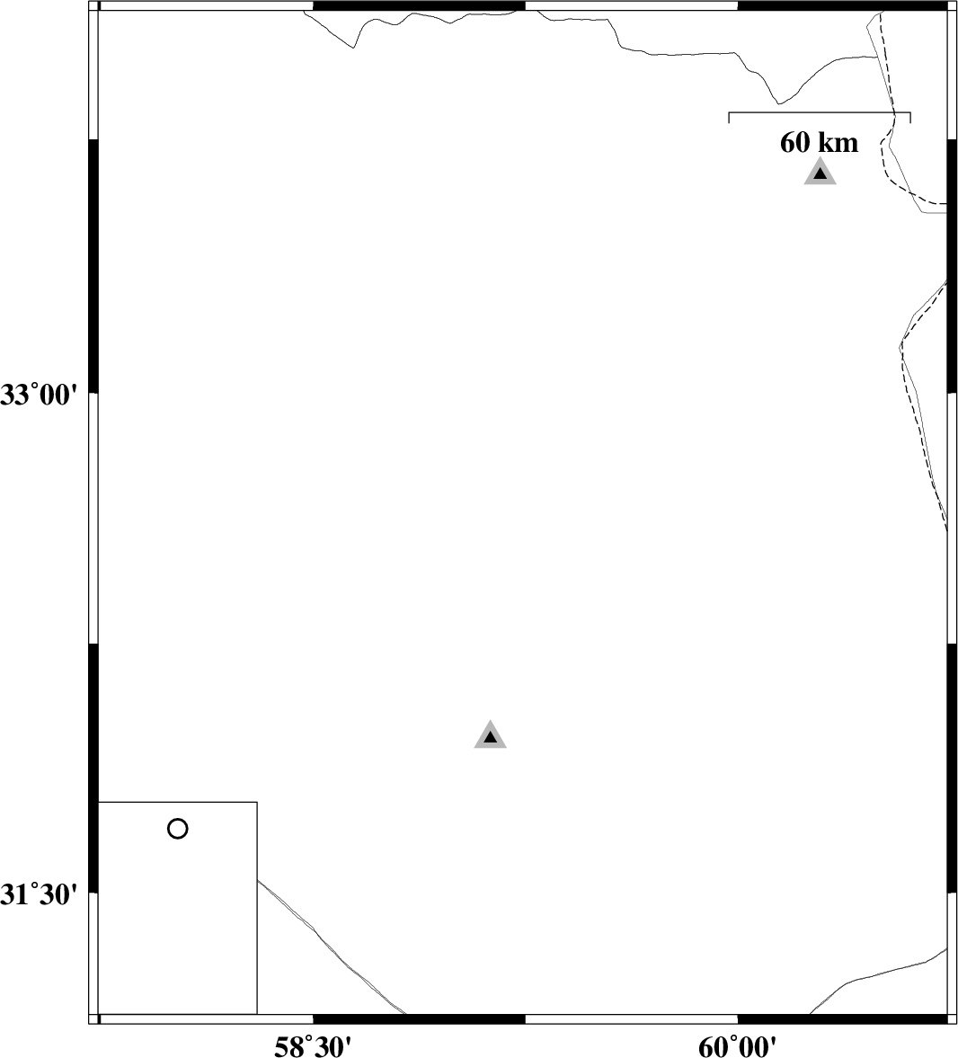 2013/07/26 | 12:00:47.4 | 16:30:47.4 | 32.63 | 59.24 | 34 | ML:2.2 | Khorasan(south) Province, 30 km South of Birjand |