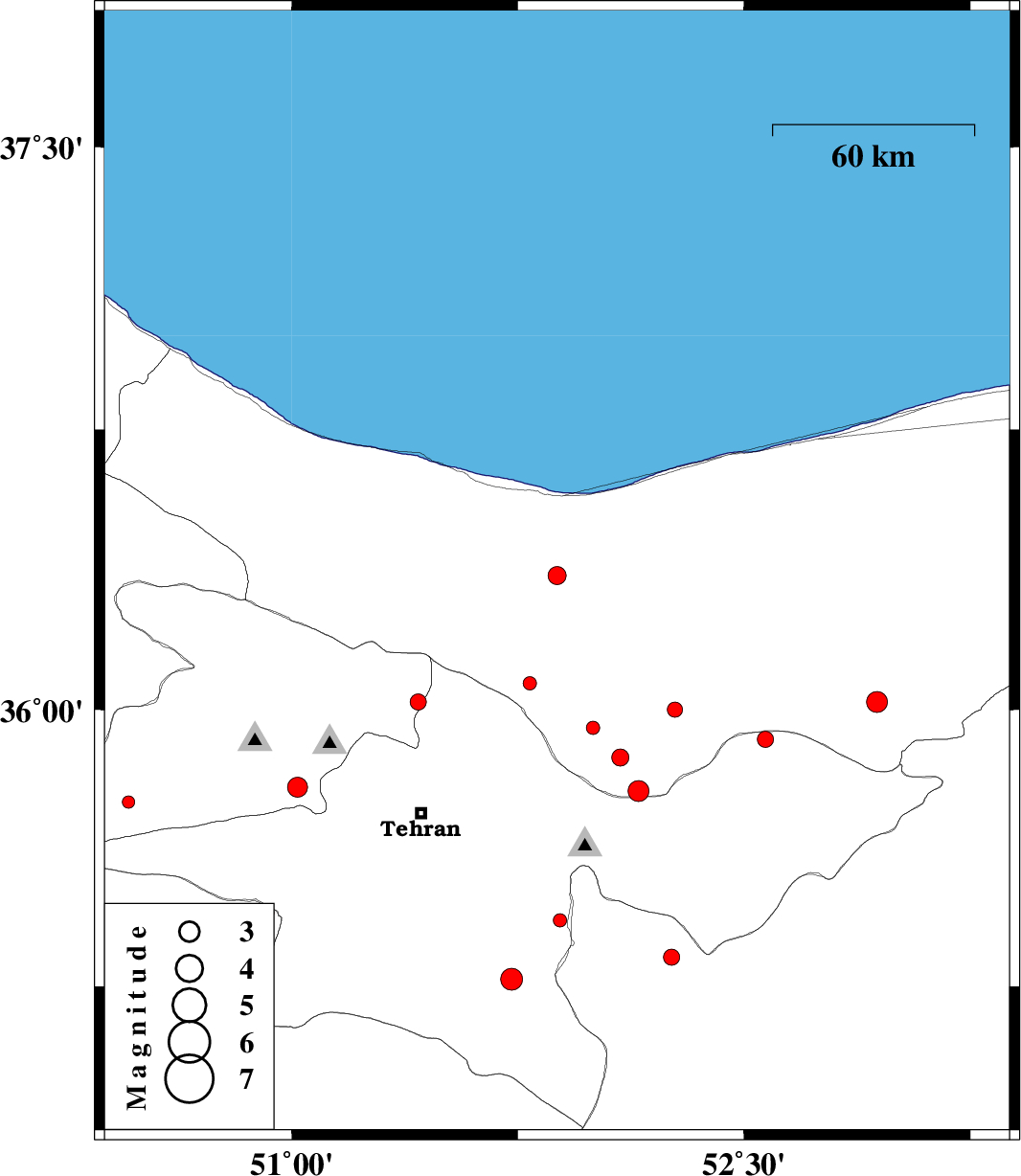 2013/06/28 | 08:45:05.0 | 13:15:05.0 | 36 | 52.27 | 11 | ML:2.3 | Mazandaran Province, 36 km North-East of Damavand |
