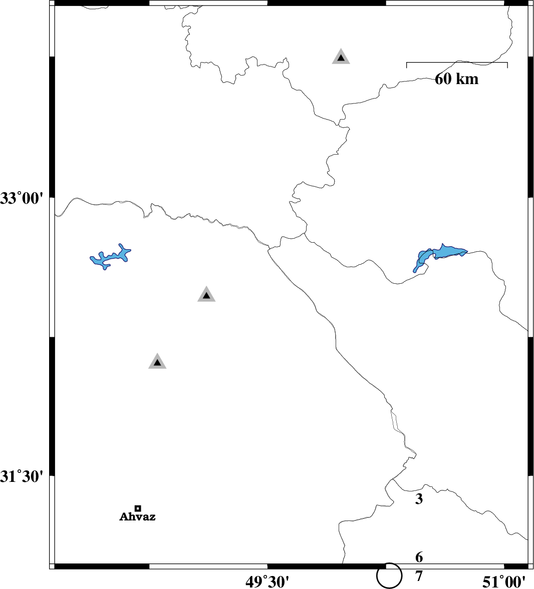 2013/07/29 | 01:38:44.9 | 06:08:44.9 | 32.52 | 49.65 | 14 | ML:3.3 | Khoozestan Province, 45 km West of Chelgard | ||