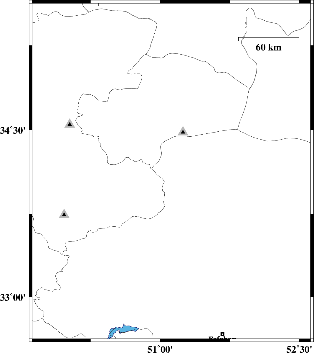 2013/07/22 | 18:11:55.5 | 22:41:55.5 | 34.96 | 50.08 | 14 | ML:2.9 | Markazi Province, 30 km North of Tafresh |