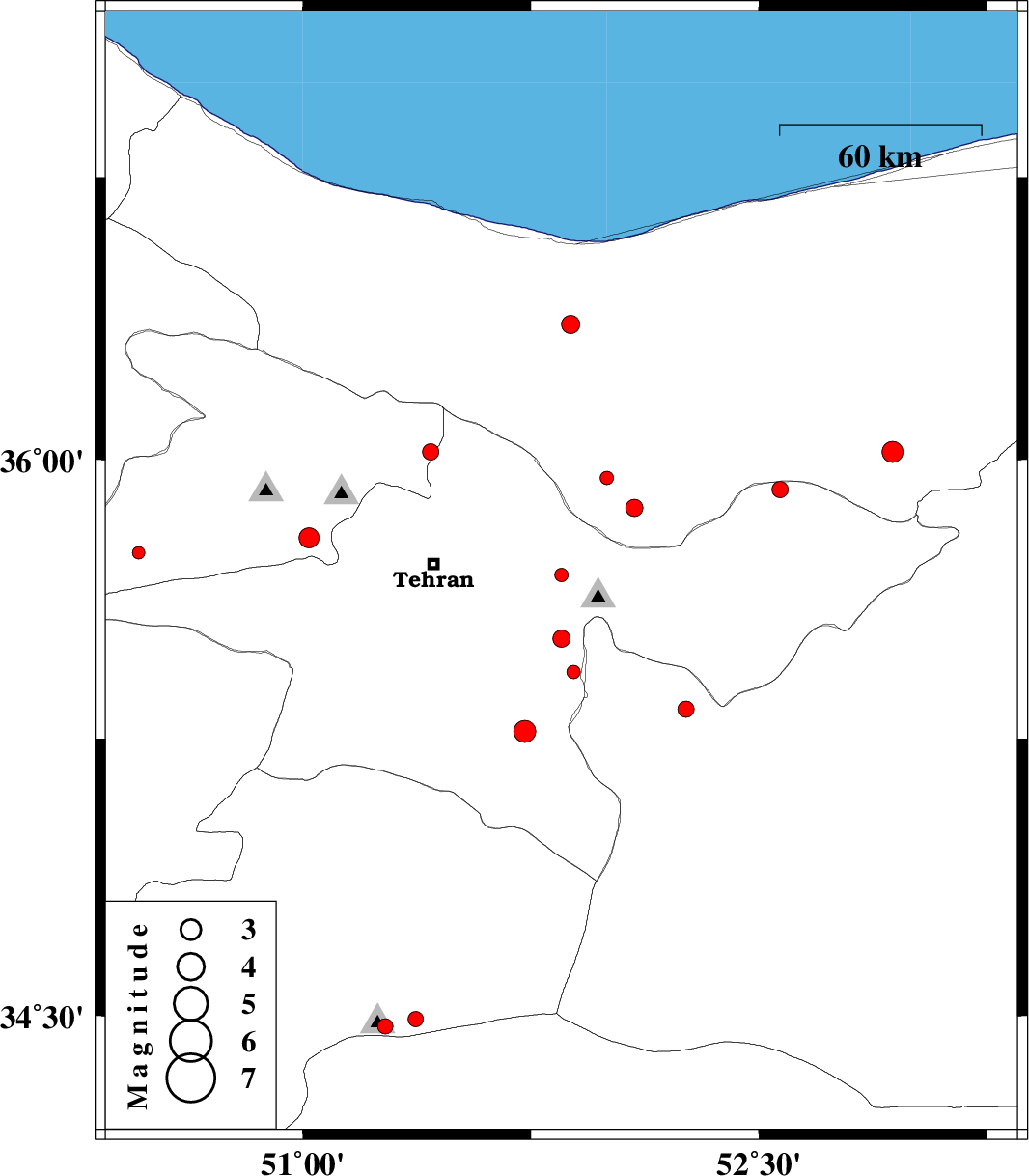 2013/07/09 | 11:15:53.5 | 15:45:53.5 | 36.02 | 51.42 | 18 | ML:2.4 | Tehran Province, 25 km North of Tajrish | ||