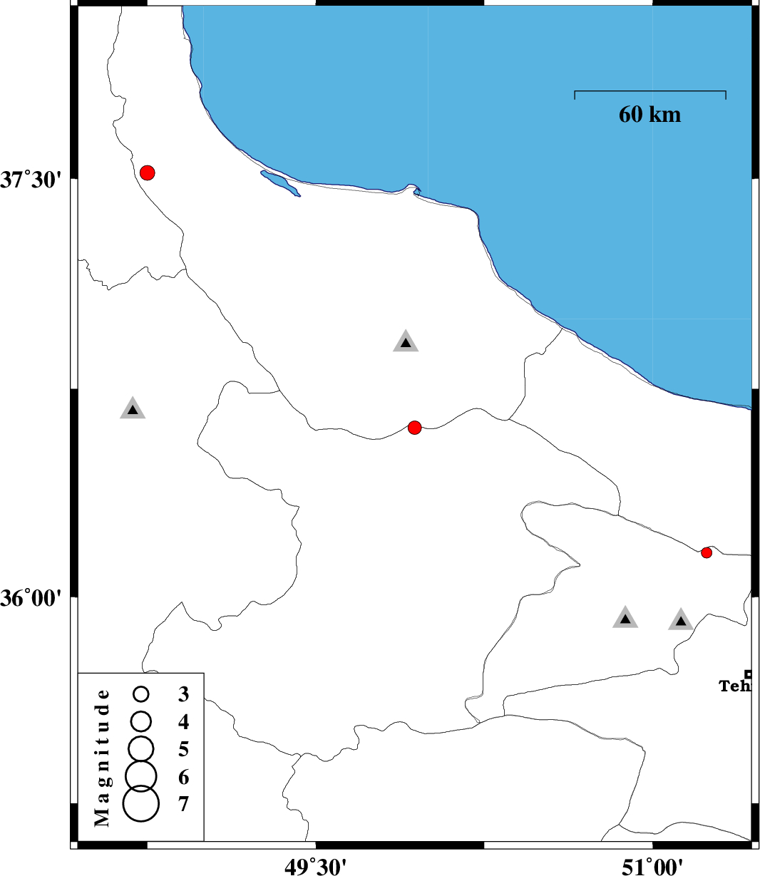 2013/07/31 | 10:02:00.3 | 14:32:00.3 | 37.52 | 48.75 | 29 | ML:3 | Gilan Province, 22 km South-East of Khalkhal | ||