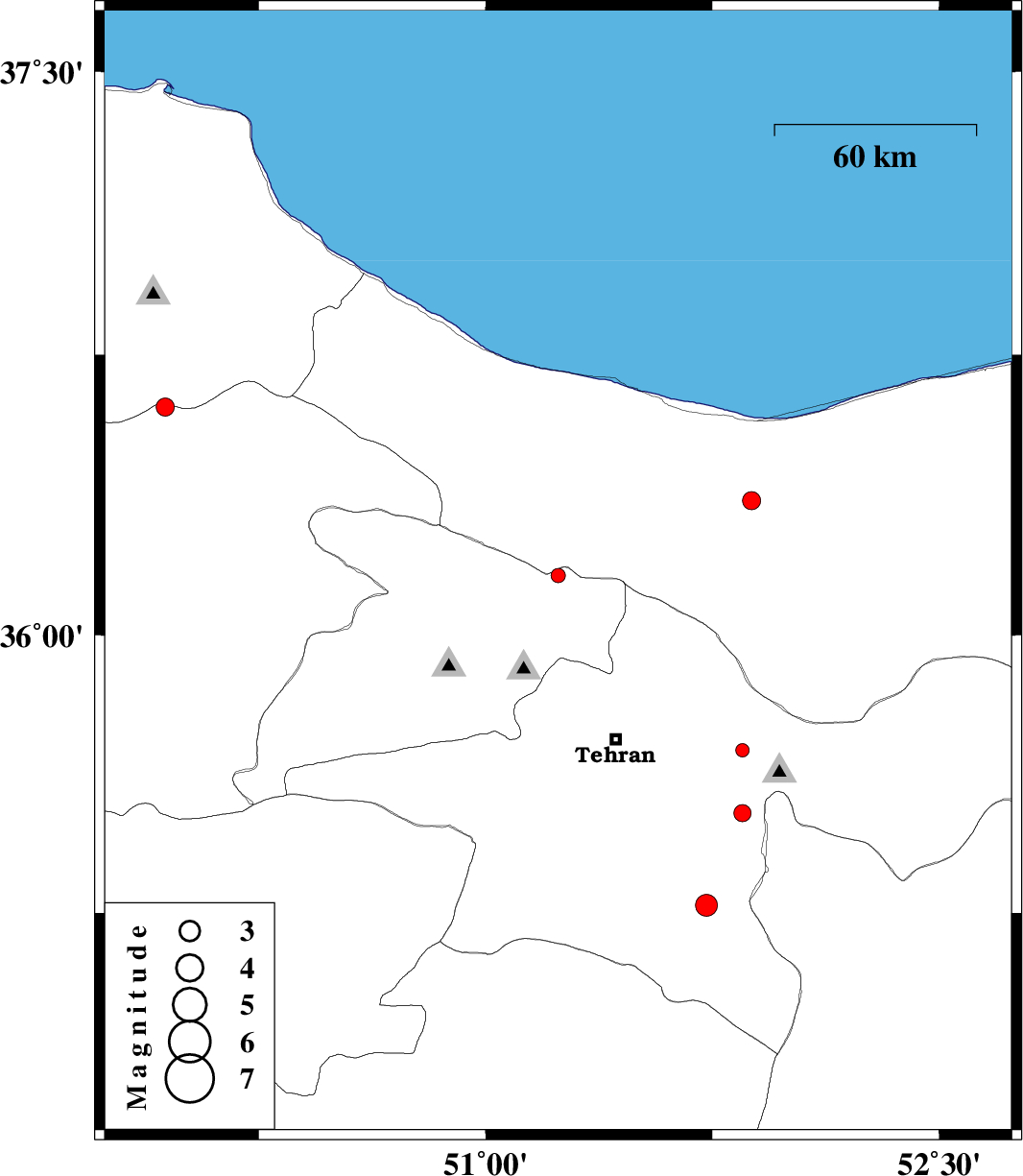 2013/07/30 | 10:19:38.2 | 14:49:38.2 | 35.69 | 51.85 | 18 | ML:2 | Tehran Province, 20 km West of Damavand | ||