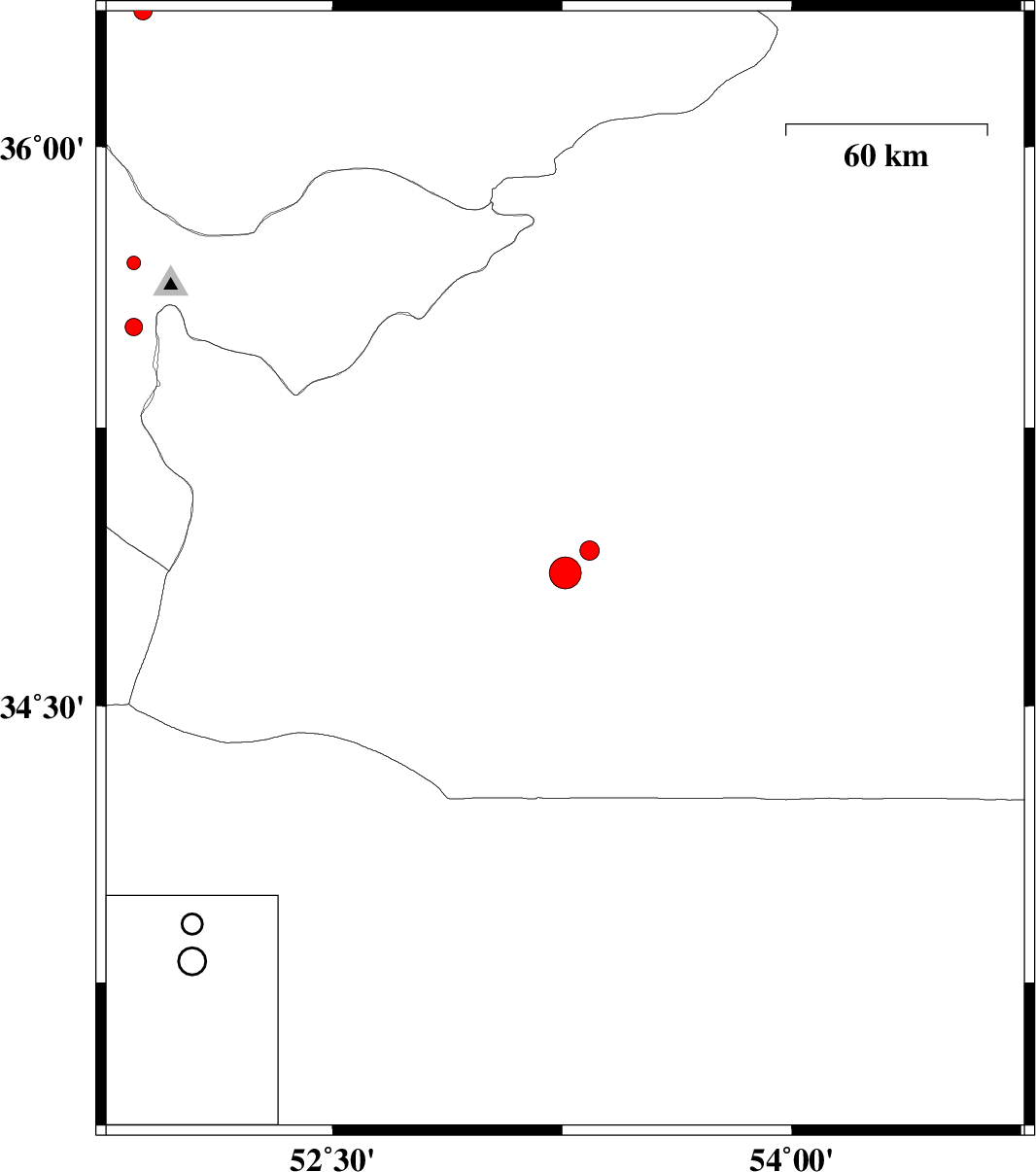 2013/08/03 15:25:07.3 19:55:07.3 34.8653.2615 ML:4.7 Semnan Province, 80 km South-West of Semnan