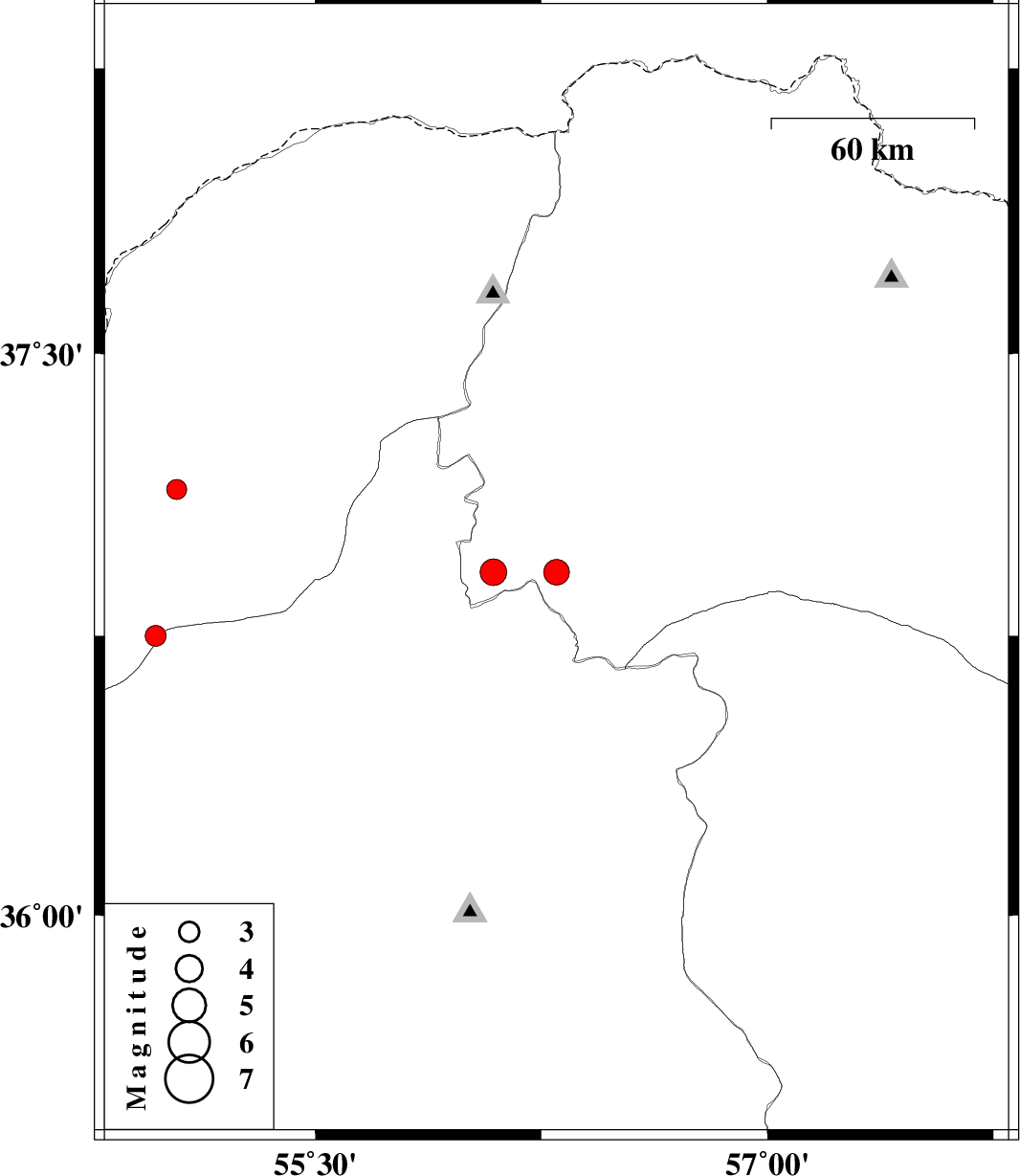 2013/08/04 | 21:38:44.0 | 02:08:44.0 | 36.92 | 56.3 | 14 | ML:3.8 | Khorasan(north) Province, 9 km Jajarm | ||