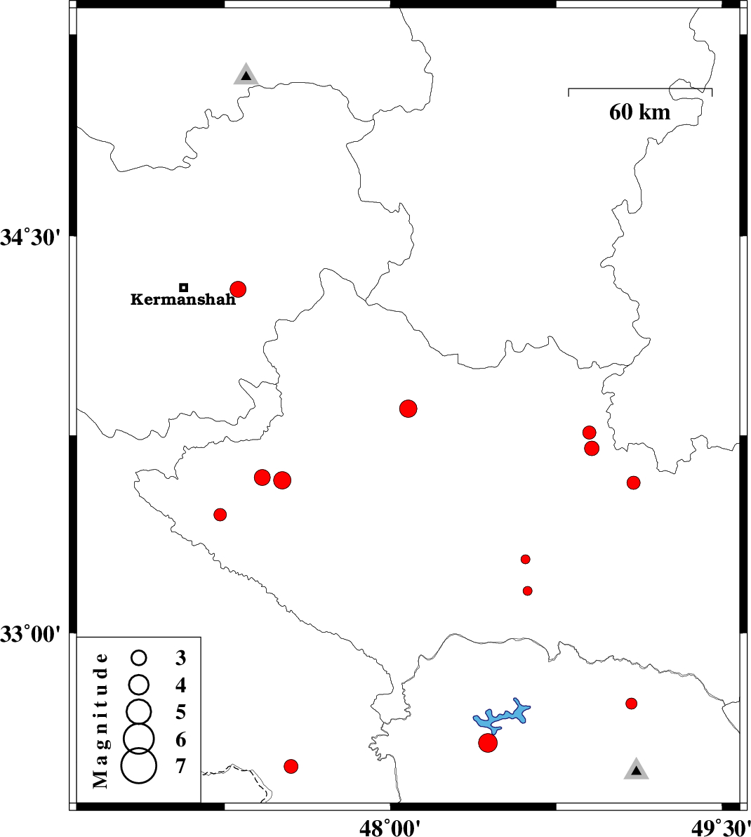 2013/07/09 | 18:32:36.1 | 23:02:36.1 | 34.3 | 47.31 | 18 | ML:3.3 | Kermanshah Province, 22 km East of Kermanshah |