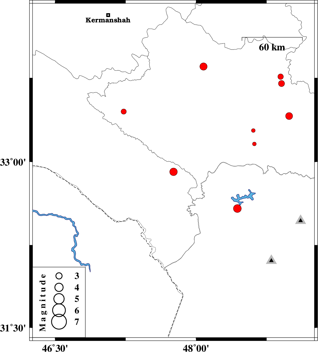 2013/08/06 | 07:33:39.1 | 12:03:39.1 | 32.91 | 47.76 | 14 | ML:3.6 | Ilam Province, 27 km South of Pol-e dokhtar | ||