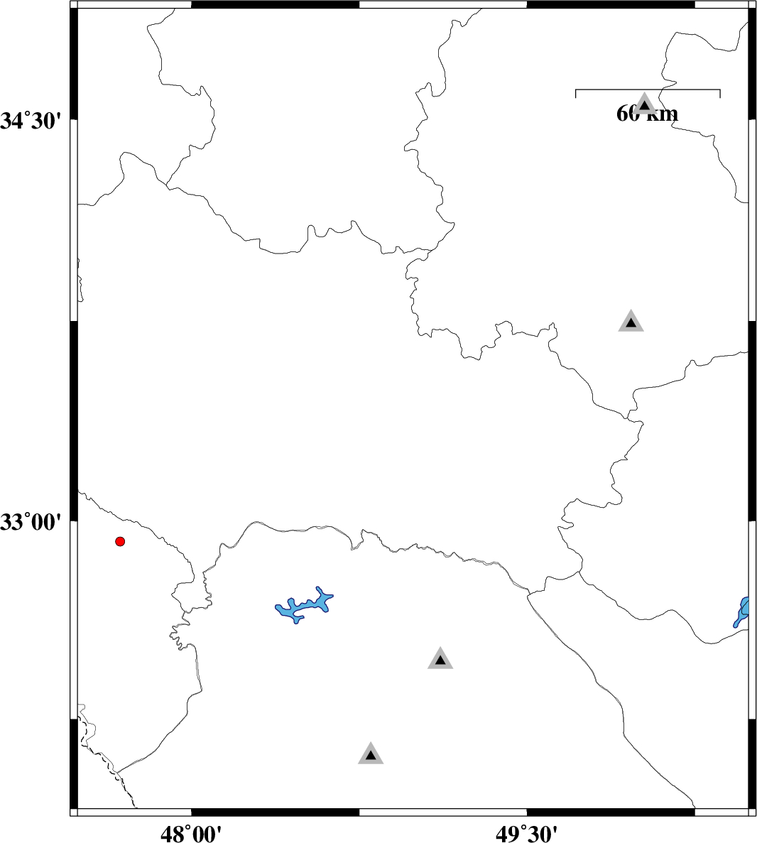 2013/08/06 | 07:33:39.1 | 12:03:39.1 | 32.91 | 47.76 | 14 | ML:3.6 | Ilam Province, 27 km South of Pol-e dokhtar | ||