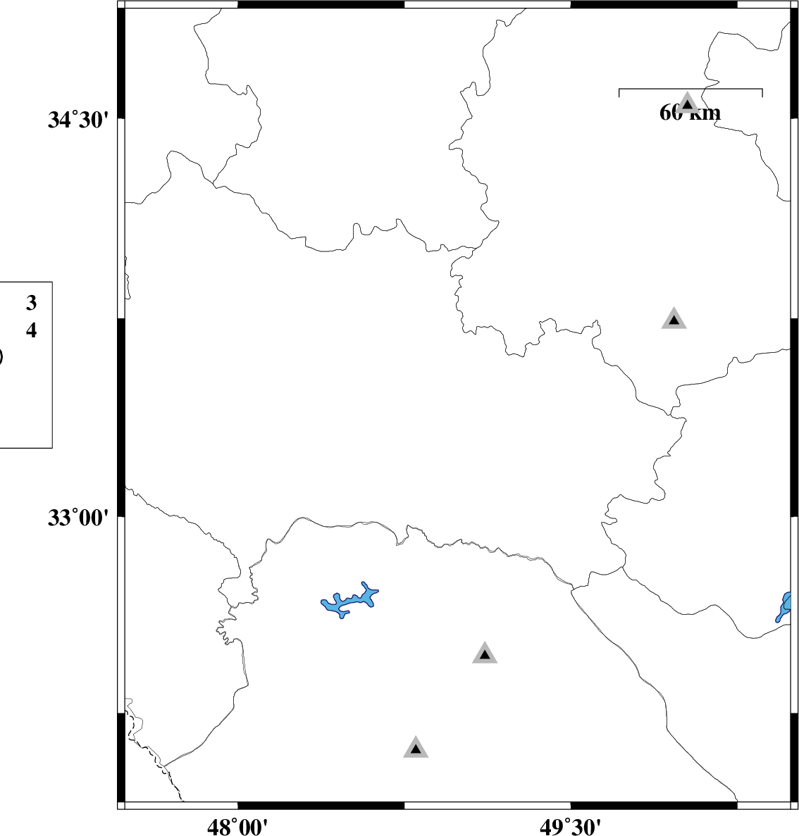 2013/08/01 | 21:40:21.2 | 02:10:21.2 | 33.16 | 48.62 | 14 | ML:1.8 | Lorestan Province, 44 km South-East of Khorramabad | ||