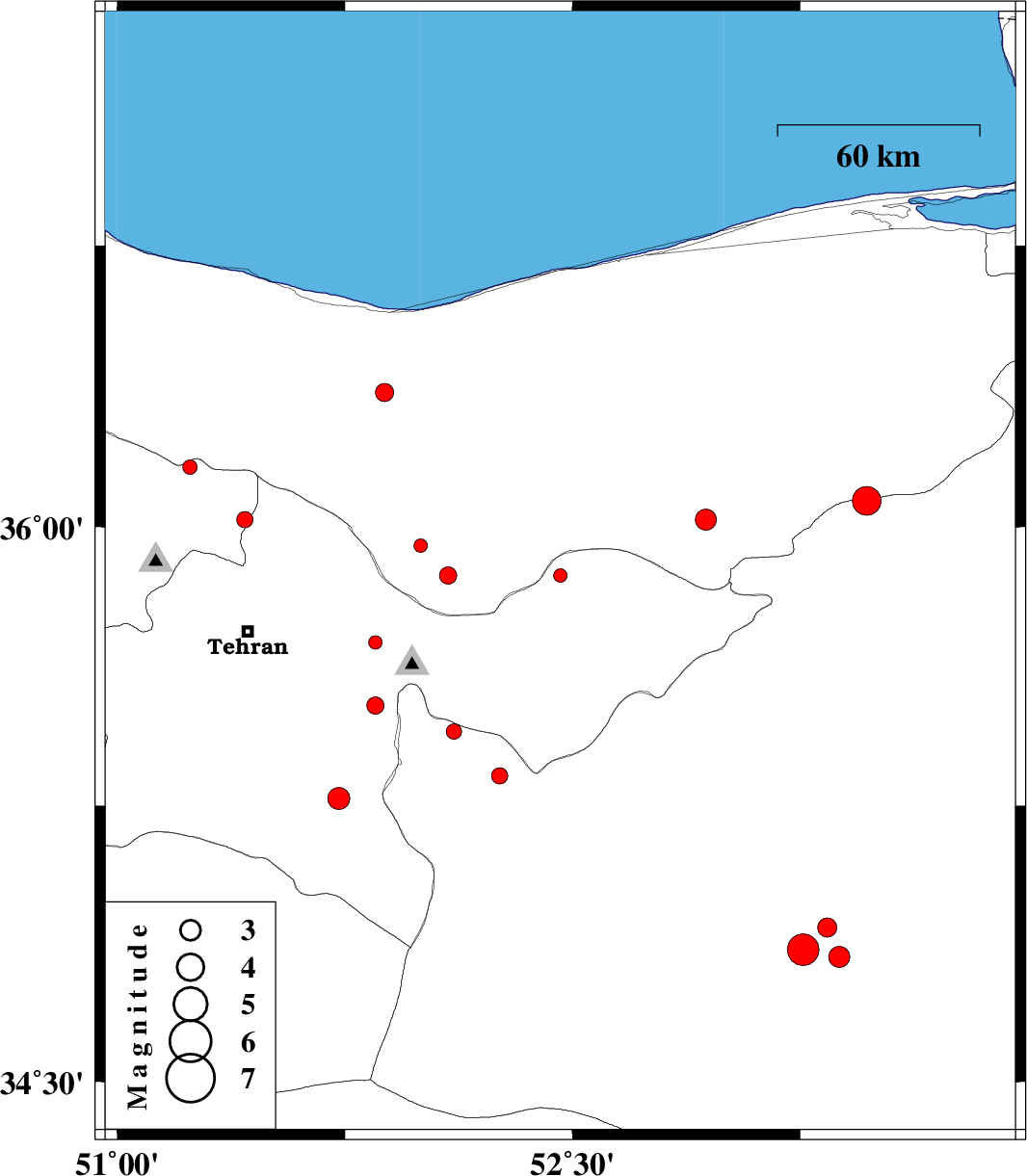 2013/07/30 | 10:19:38.2 | 14:49:38.2 | 35.69 | 51.85 | 18 | ML:2 | Tehran Province, 20 km West of Damavand | ||