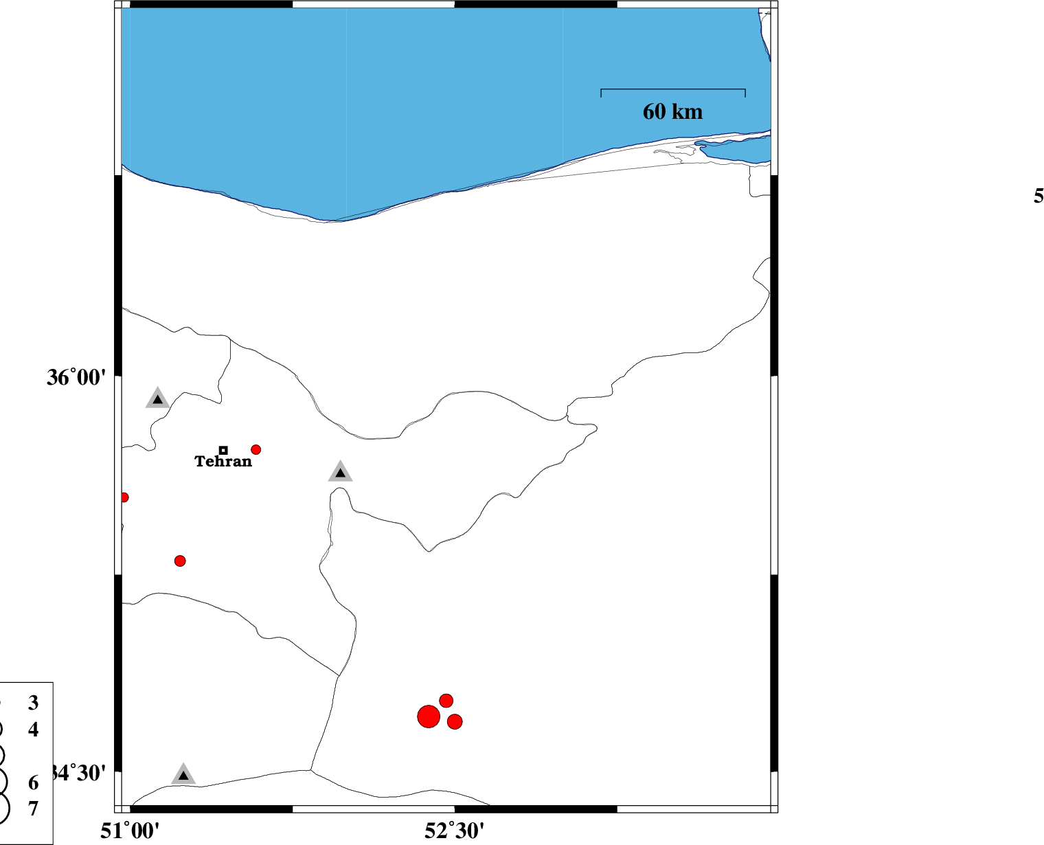 2013/08/06 | 22:27:36.6 | 02:57:36.6 | 35.87 | 52.46 | 6 | ML:2 | Tehran Province, 31 km North-West of Firuzkuh | ||