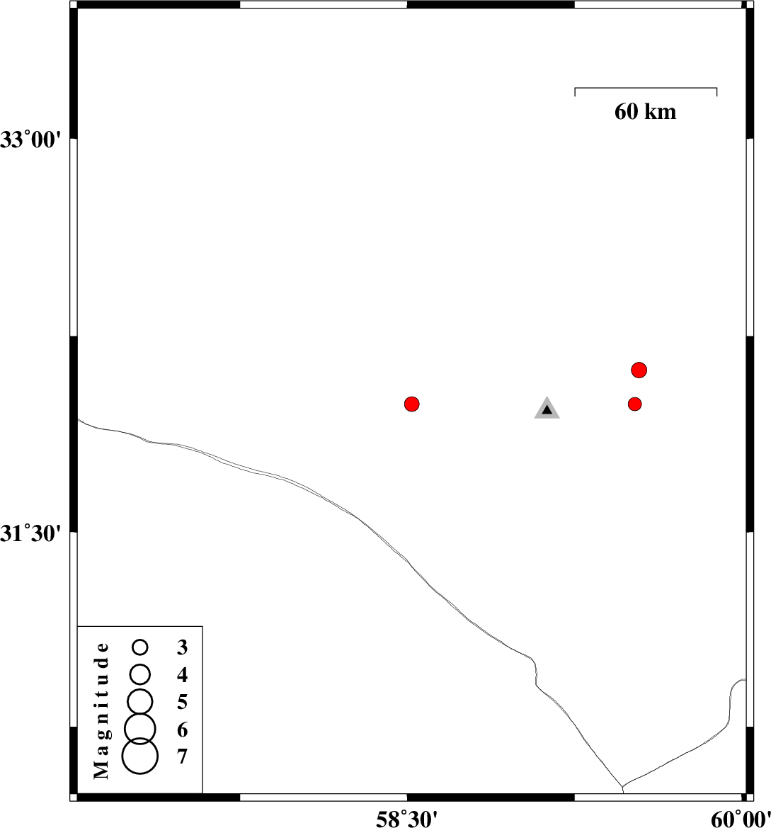 2013/08/16 | 15:42:50.6 | 20:12:50.6 | 31.99 | 58.52 | 14 | ML:3 | Khorasan(south) Province, 121 km South-West of Birjand | ||