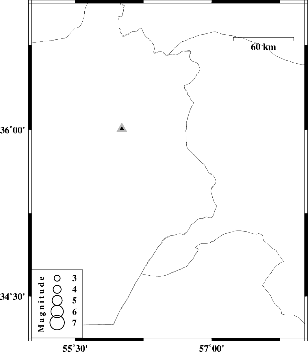 2013/08/20 | 12:49:32.8 | 17:19:32.8 | 35.62 | 56.52 | 15 | ML:3.9 | Semnan Province, 148 km South-East of Jajarm |