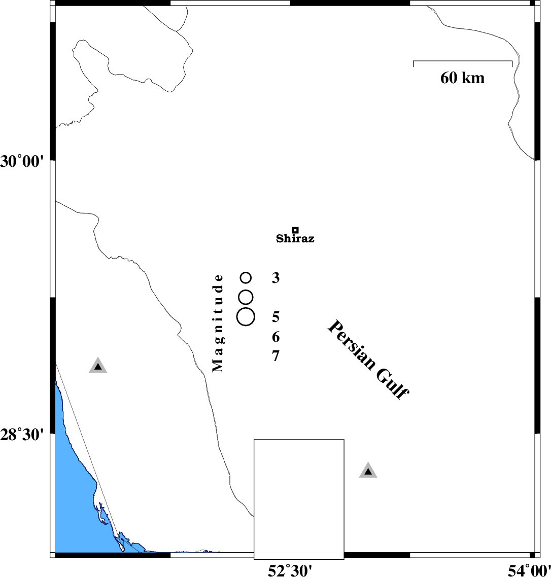 2013/09/01 | 15:58:58.4 | 20:28:58.4 | 29.34 | 52.53 | 15 | ML:4 | Fars Province, 31 km South of Shiraz |