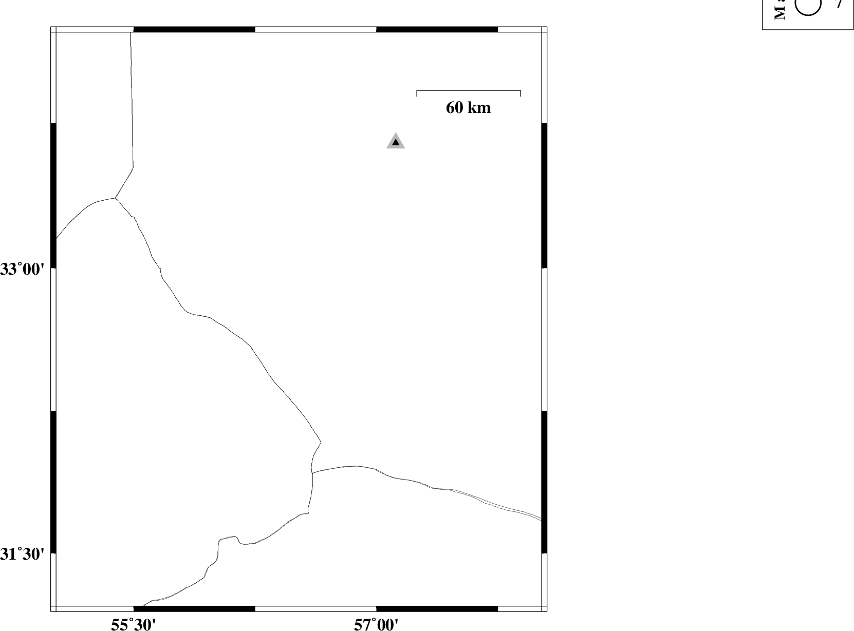 2013/08/27 | 22:54:00.4 | 03:24:00.4 | 32.7 | 56.55 | 15 | ML:3.1 | Yazd Province, 106 km South-West of Tabas | ||