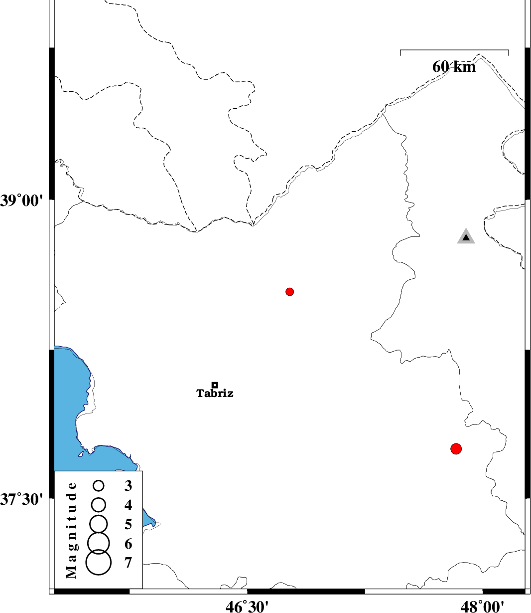 2013/09/09 | 22:40:46.0 | 03:10:46.0 | 38.54 | 46.77 | 14 | ML:2.3 | Azarbaijan Sharghi Province, 27 km West of Ahar | ||