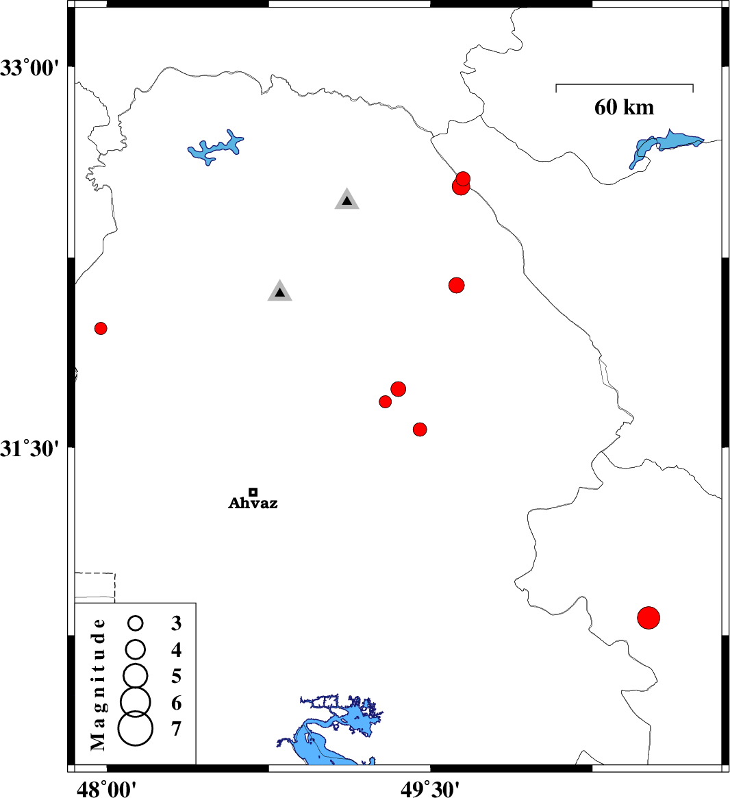 2013/08/26 | 02:23:47.8 | 06:53:47.8 | 31.97 | 47.97 | 14 | ML:2.6 | Khoozestan Province, 37 km South-West of Shush | ||