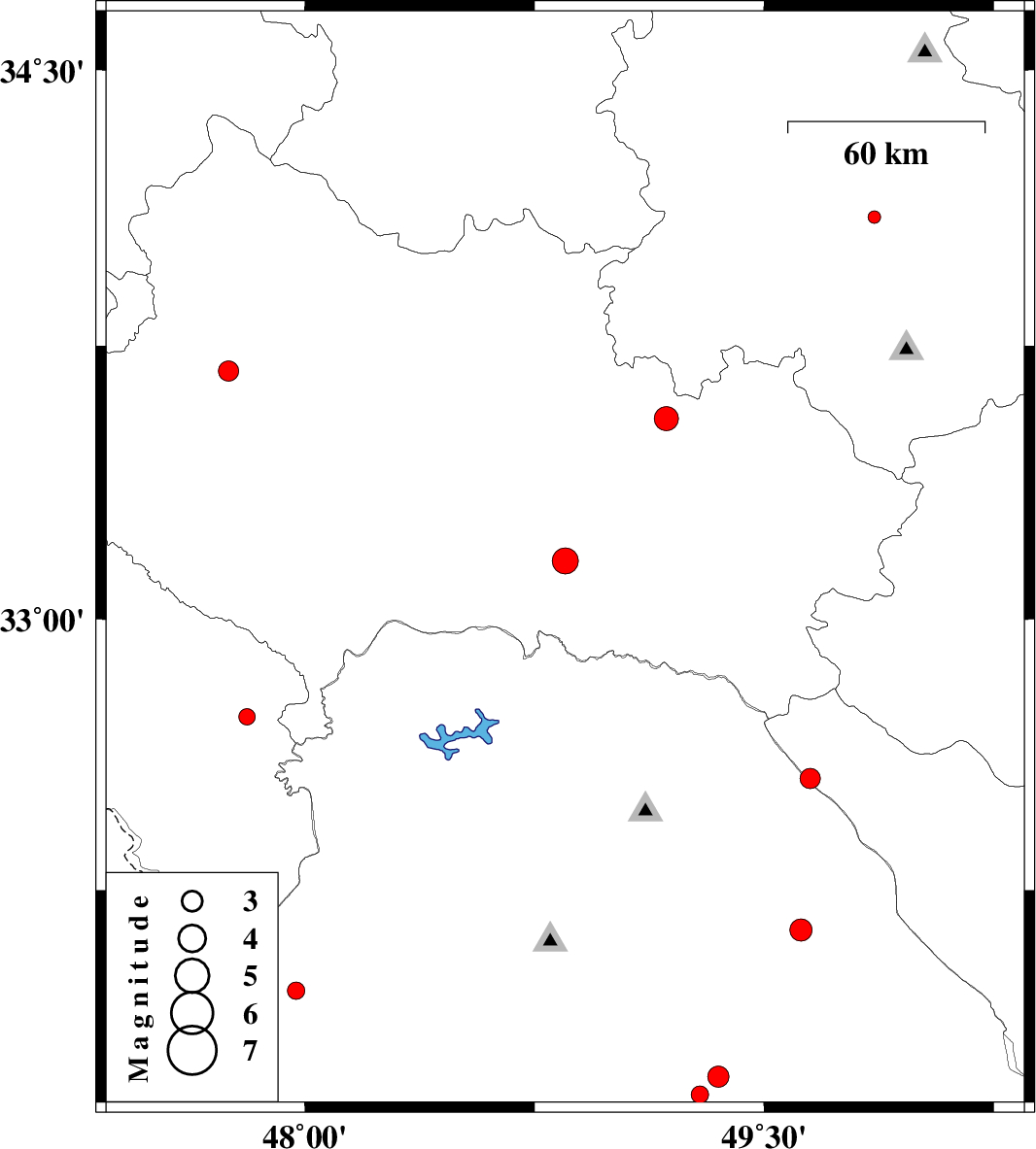 2013/09/13 | 00:25:49.9 | 04:55:49.9 | 33.16 | 48.85 | 14 | ML:3.8 | Lorestan Province, 41 km South-West of Dorud | ||
