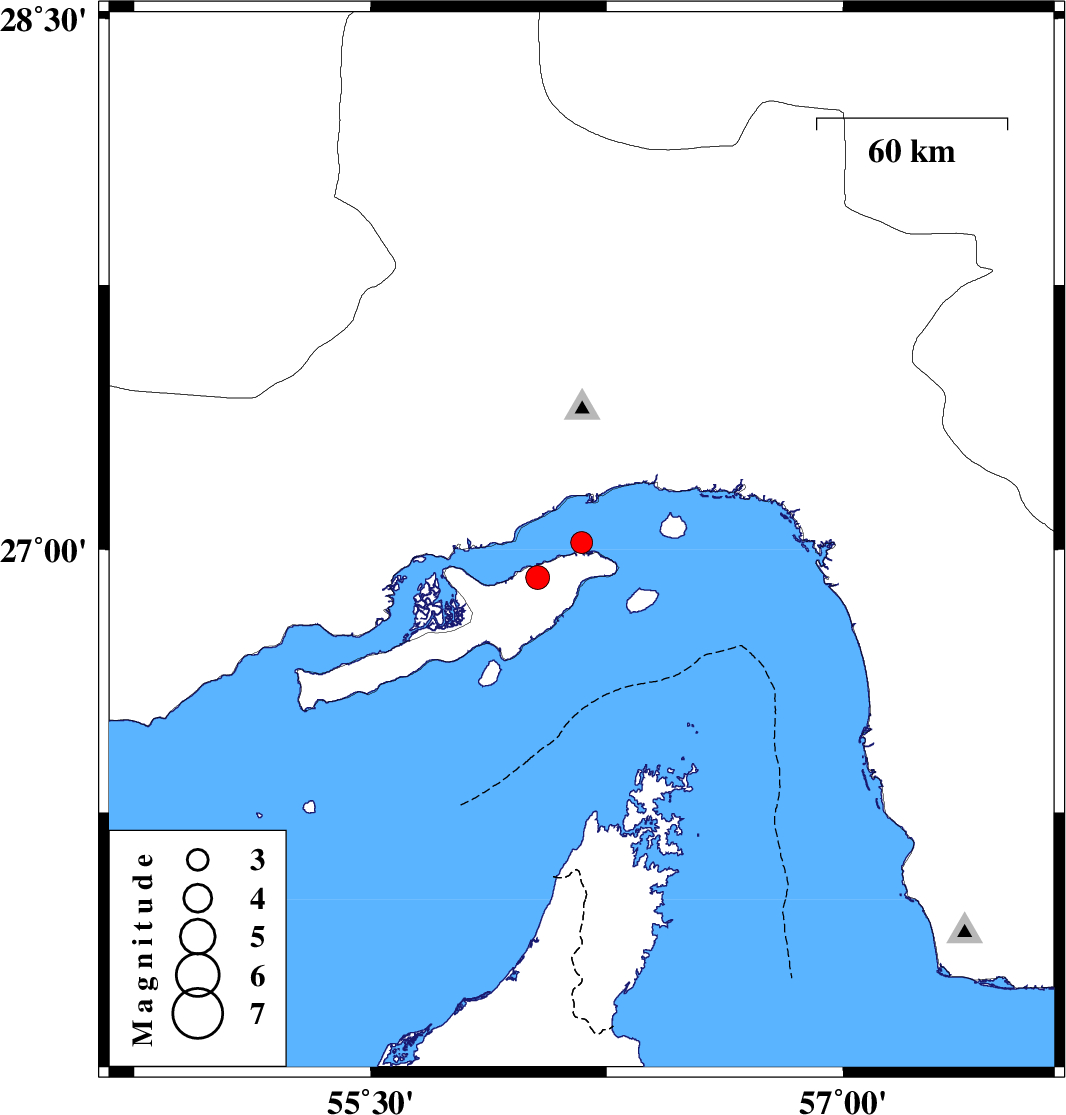 2013/09/17 | 16:19:41.3 | 20:49:41.3 | 26.92 | 56.03 | 15 | ML:3.4 | Persian Gulf, 24 km West of Qeshm |