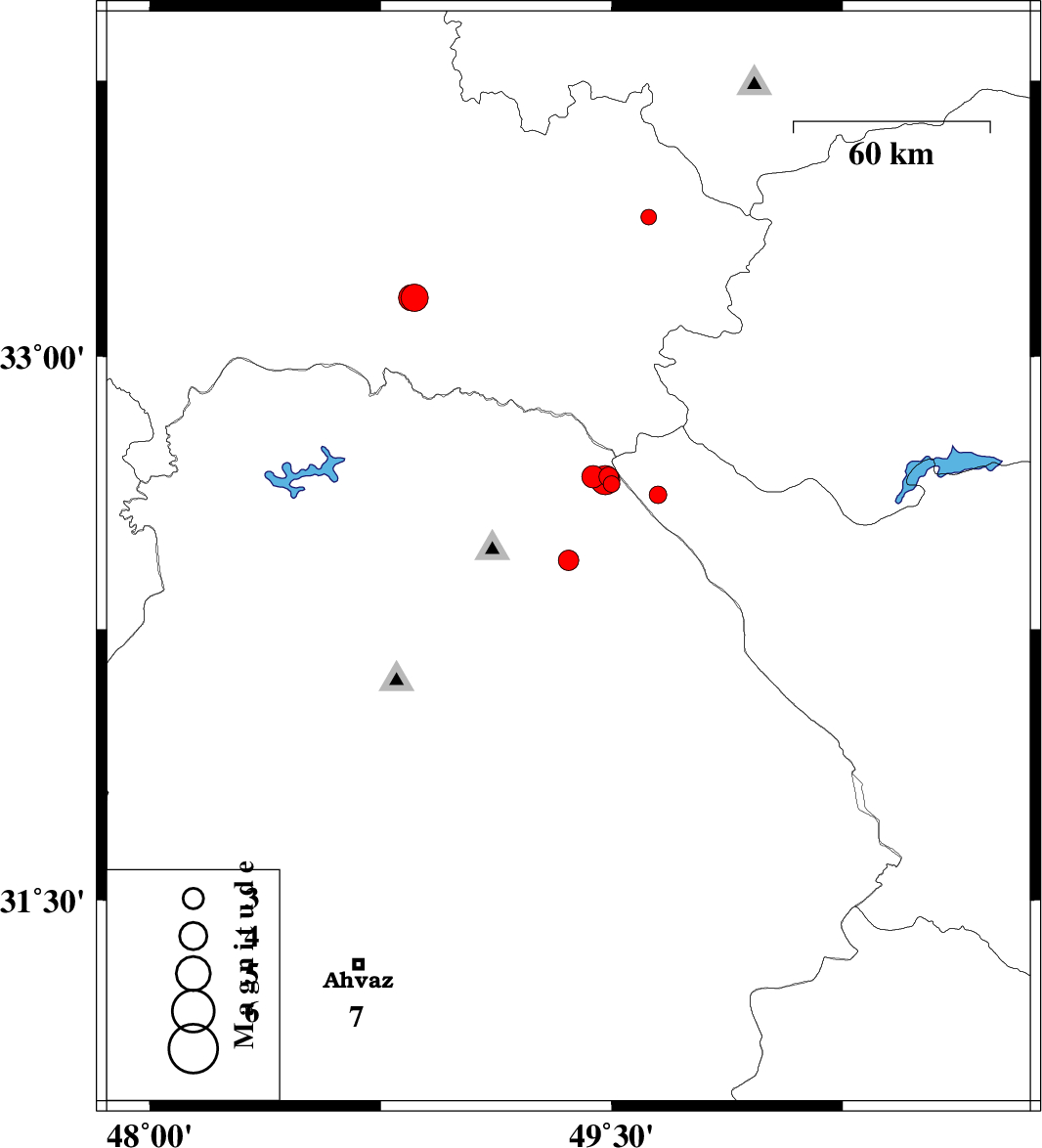 2013/09/16 | 16:05:04.3 | 20:35:04.3 | 32.66 | 49.48 | 15 | ML:4.3 | Khoozestan Province, 46 km North-East of Lali | ||