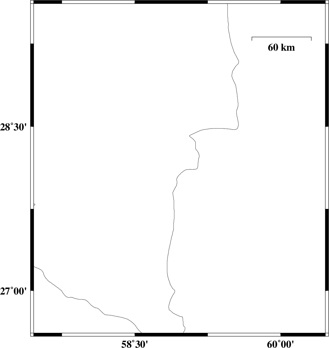 2013/09/22 | 23:13:36.4 | 02:43:36.4 | 28.11 | 58.96 | 18 | ML:3.3 | Kerman Province, 125 km North-East of Kahnuj |