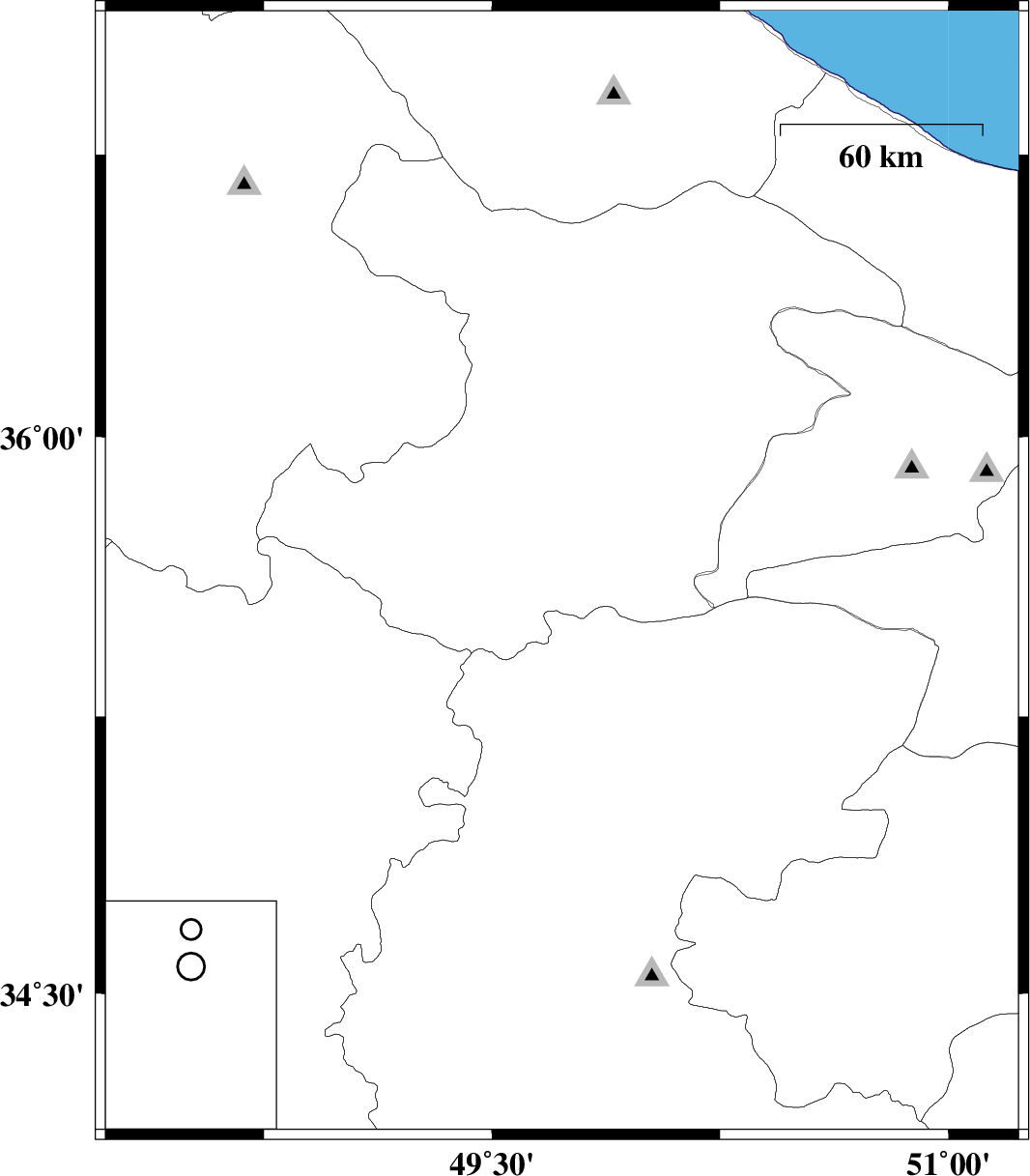 2013/10/04 | 15:28:06.4 | 18:58:06.4 | 35.63 | 49.73 | 16 | ML:2.3 | Ghazvin Province, 48 km South of Takestan |