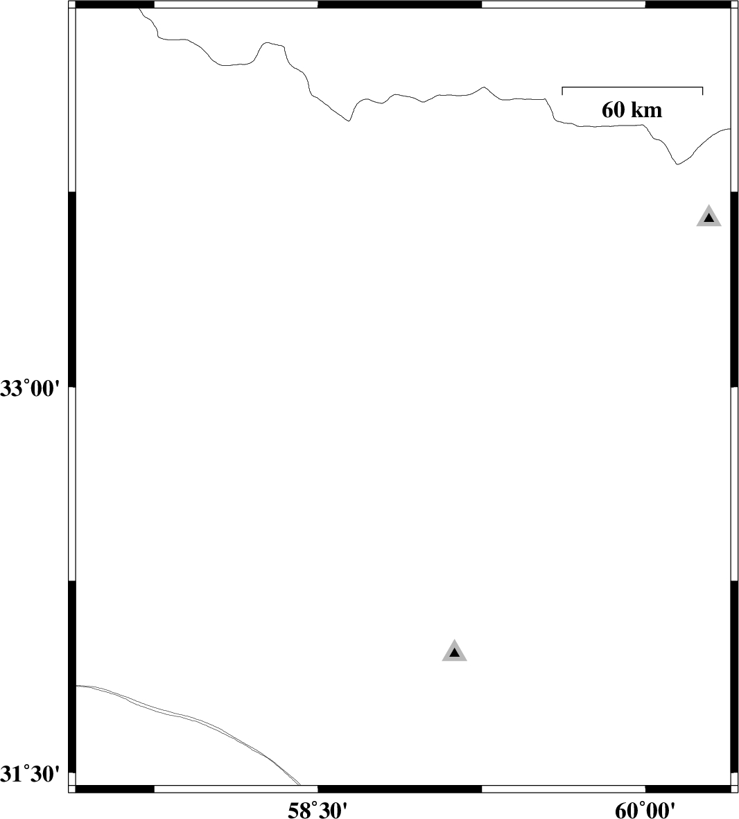 2013/10/02 | 07:15:20.6 | 10:45:20.6 | 33.19 | 58.44 | 16 | ML:3.4 | Khorasan(center) Province, 94 km South-East of Ferdows |