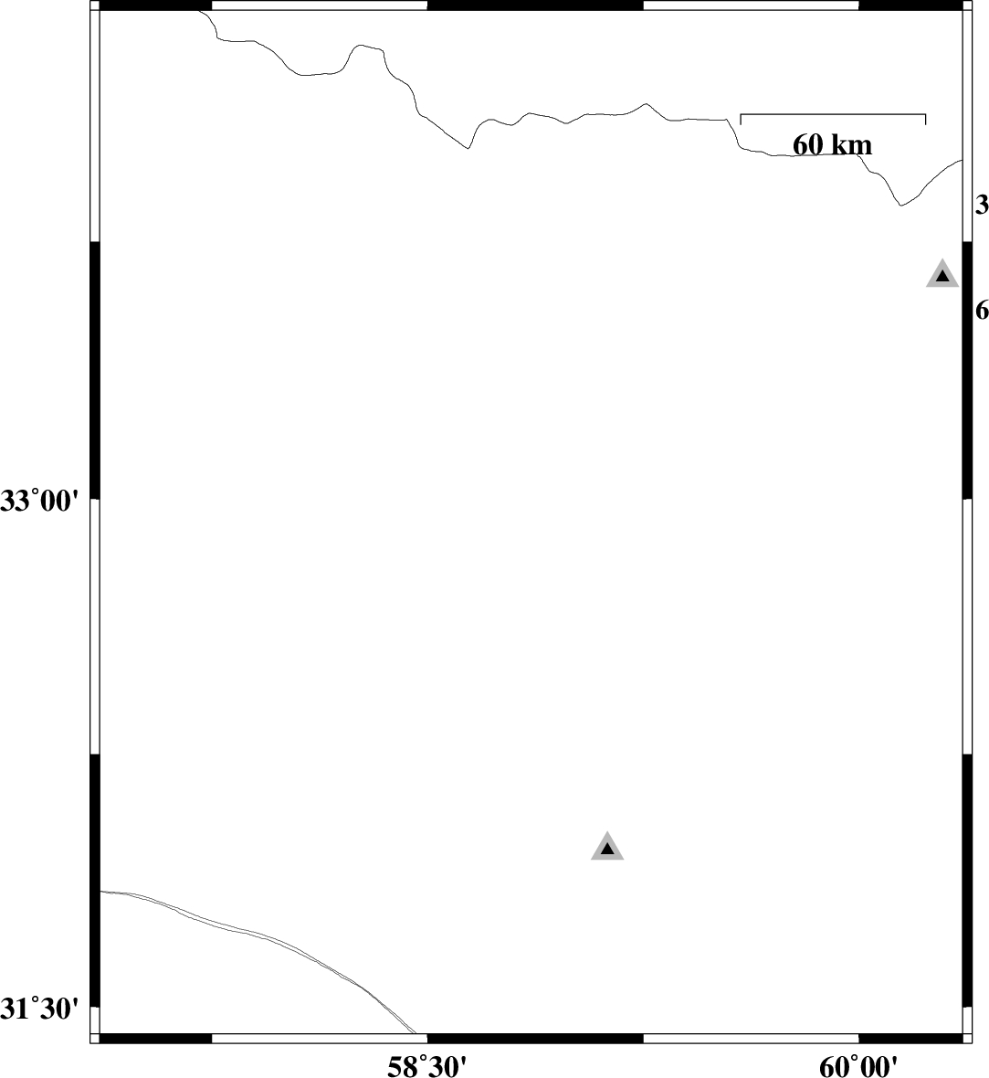 | 2013/10/05 | 15:56:27.1 | 19:26:27.1 | 32.92 | 58.85 | 14 | ML:2.9 | Khorasan(south) Province, 35 km West of Birjand | ||