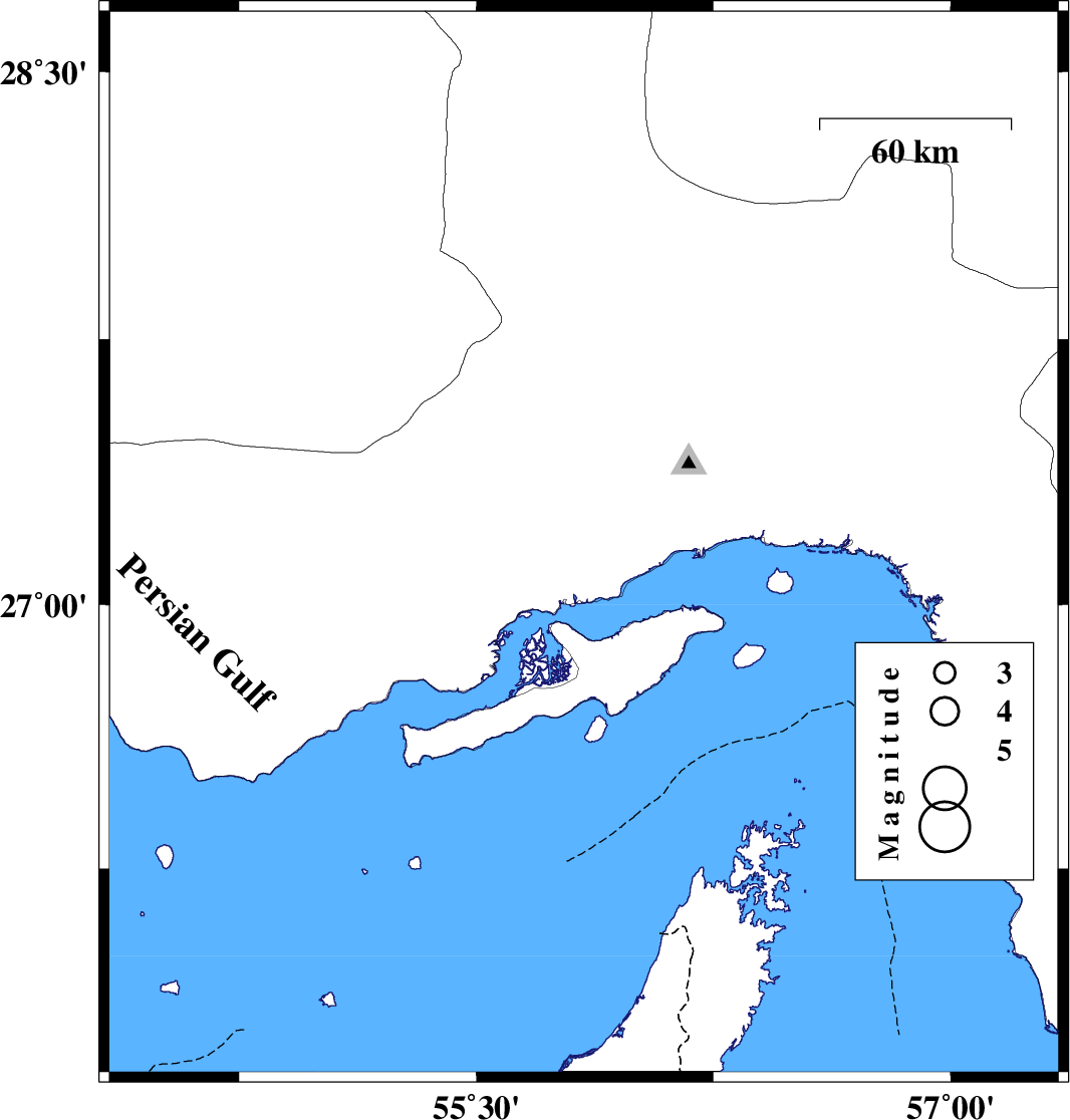 2013/10/08 | 02:52:07.3 | 06:22:07.3 | 27.17 | 55.84 | 15 | ML:4.8 | Hormozgan Province, 44 km West of Bandar-e abbas |