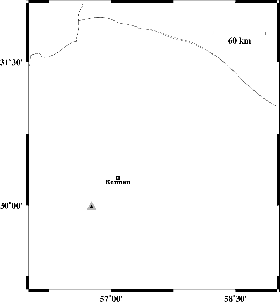 2013/10/09 | 19:11:03.8 | 22:41:03.8 | 30.61 | 57.5 | 14 | ML:2.7 | Kerman Province, 54 km North-East of Kerman |